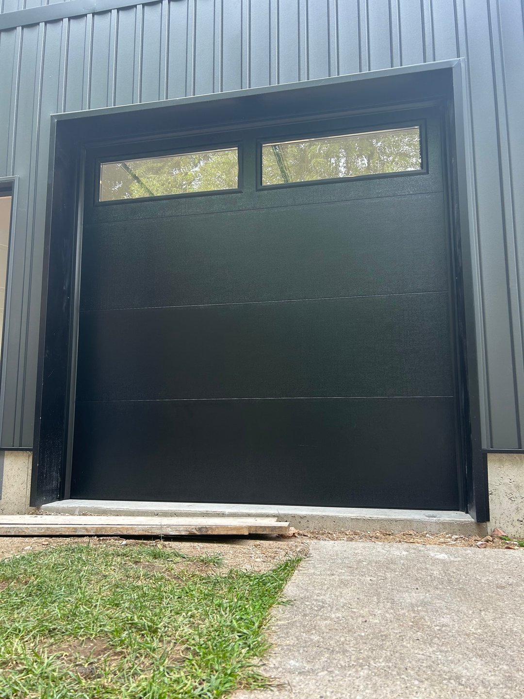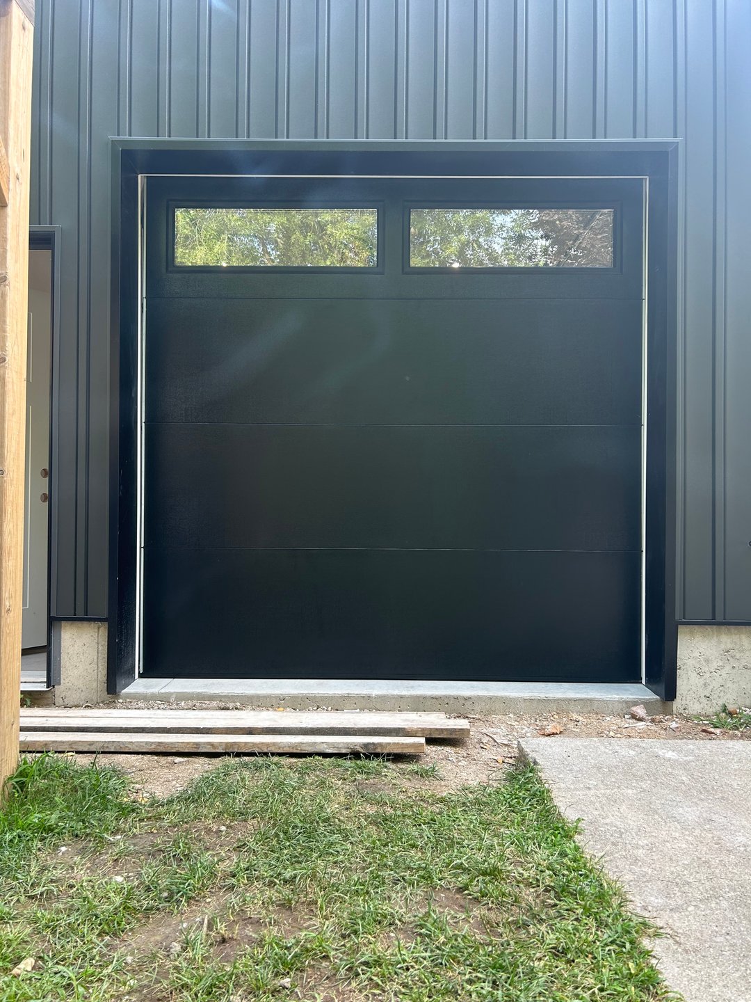 This black flush garage door with top clear windows is giving pure Saturday night energy — sleek, modern, and ready…
